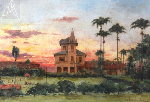 Óleo s/ madeira - med. 27 x 38 cm. Ass. e dat. CID, 1928.